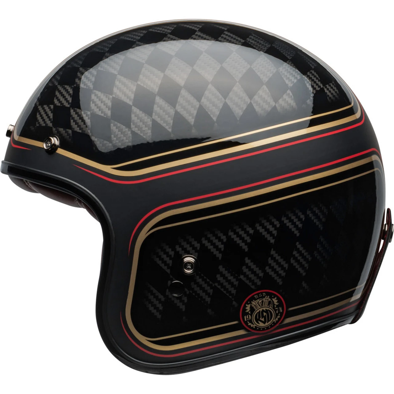 The BellCustom 500 RSD Carbon Checkmate helmet blends some custom Roland Sands styling with the timeless Custom 500 setup.