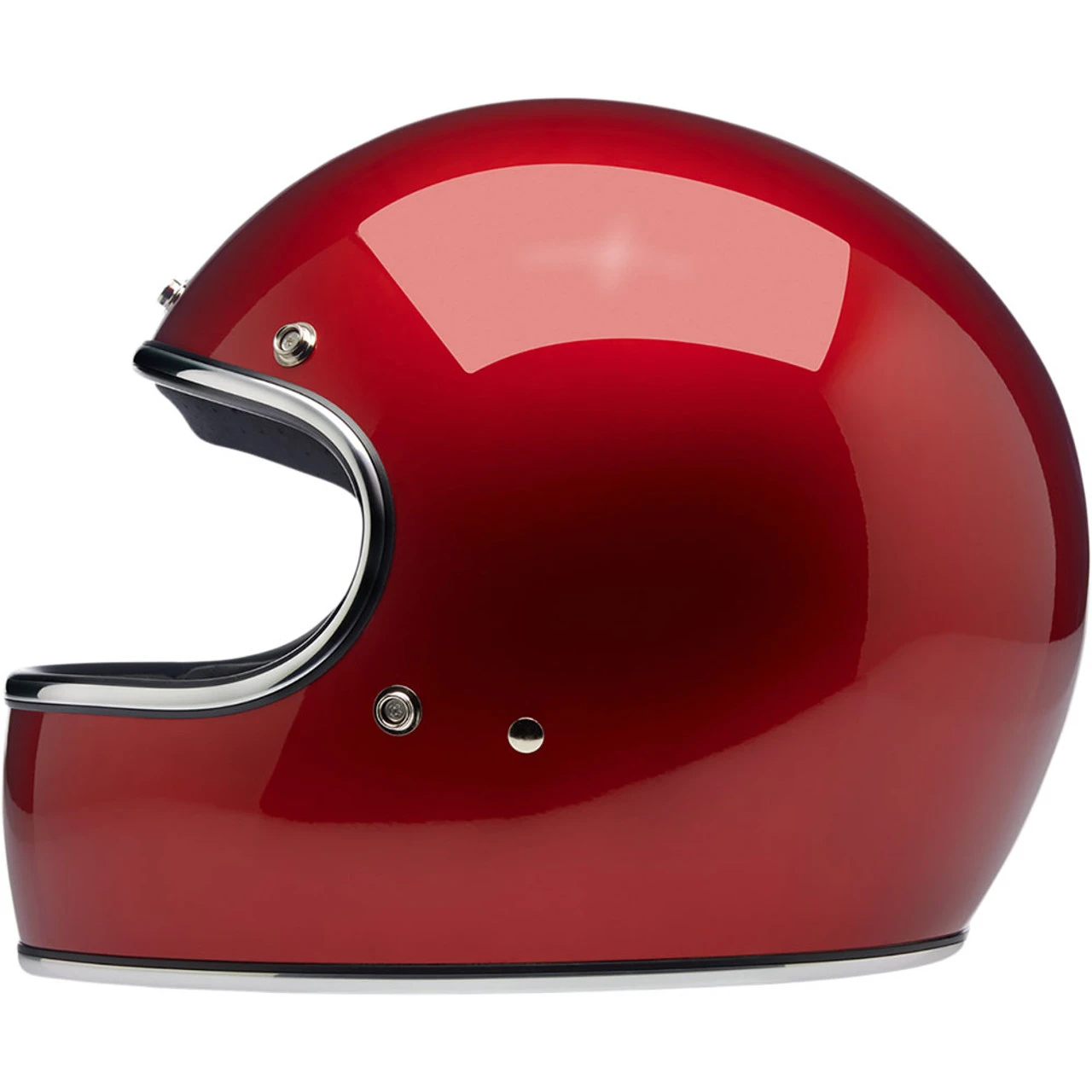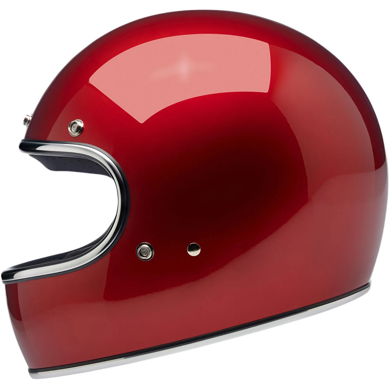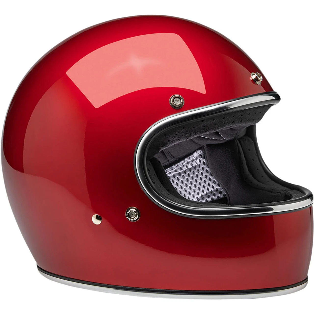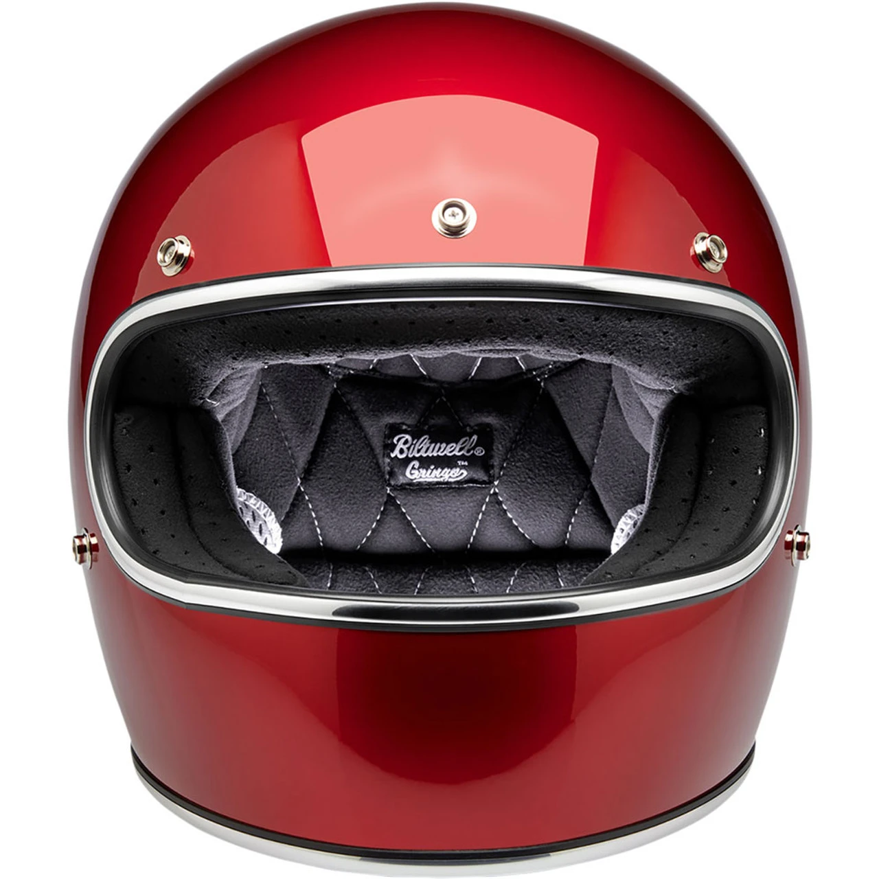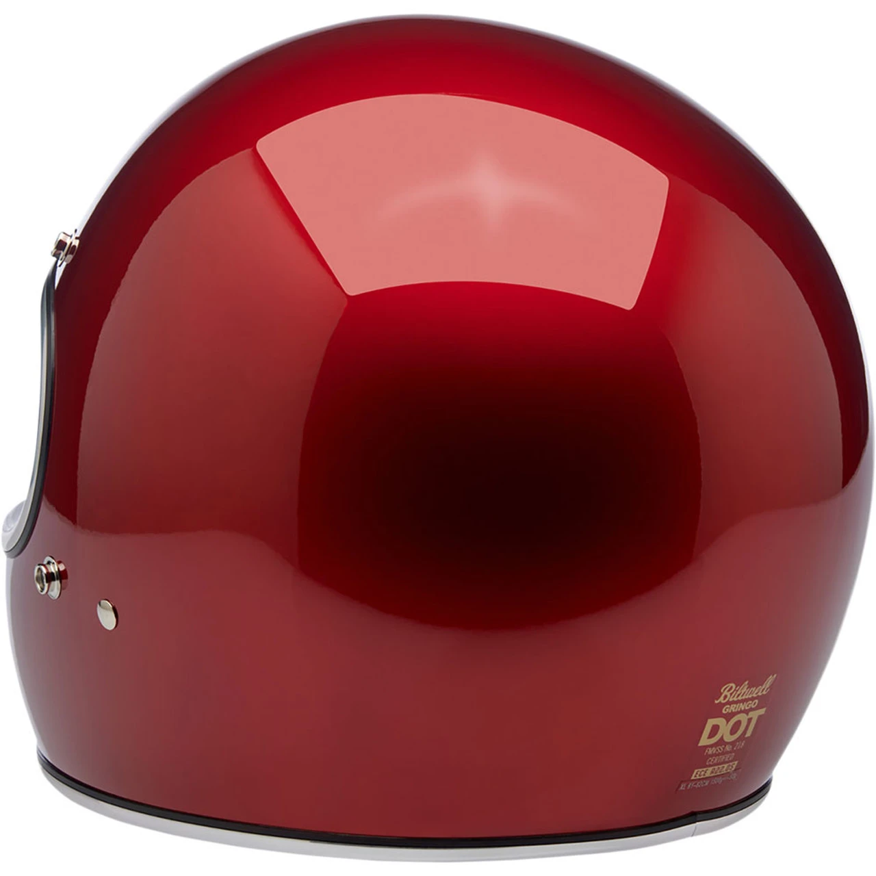 New for 2021, Biltwell’s Gringo helmet comes in a Metallic Cherry Red finish. The Biltwell Gringo was and is a classic motorcycle helmet – and now Biltwell’s taken their beloved Gringo to the next level with a new ECE safety rating. Ride with even more confidence and in the same clean, classic style. Seamless injection-molded ABS outer shell, shock-absorbing EPS inner shell and a removable, hand-stitched removable comfort liner with open-cell foam and brushed Lycra construction. The chinstrap is adorned with brushed Lycra material on touch points and features a flat D-ring fastener with an adjustable snap end retainer. Five snaps around the Gringo’s eye port facilitate easy installation of a Biltwell bubble shield or Blast shield which you can grab in our store!