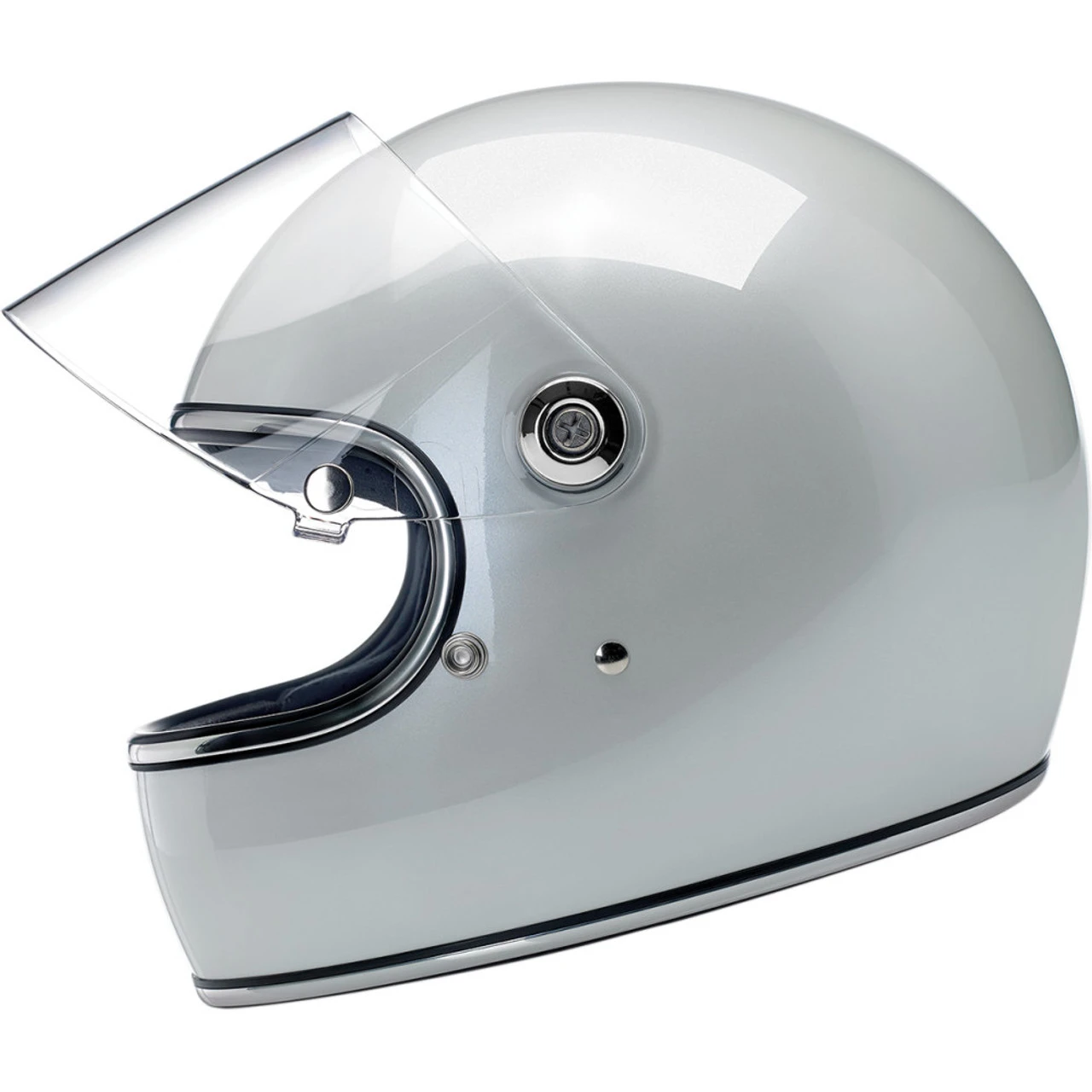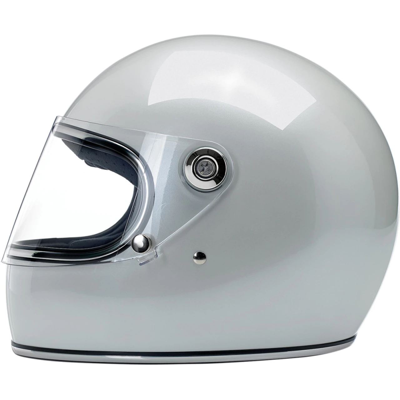 Grab yourself the Biltwell Gringo S in a classy Metallic Pearl White that pairs well with just about any bike or style. It’s built around Biltwell’s injection-molded ABS outer shell and features a shock-absorbing EPS liner with hand-stitched interior padding, cheek pads and BioFoam chin bar cushion for comfort. The anti-fog Gringo S shield boasts awesome optics and simple hinge mechanics for high style and easy removal for replacement or cleaning. A snap and tab configuration on the rider’s left side offers speedy opening and secure closing to protect its wearer from road debris and wind irritation with little fanfare or complication.