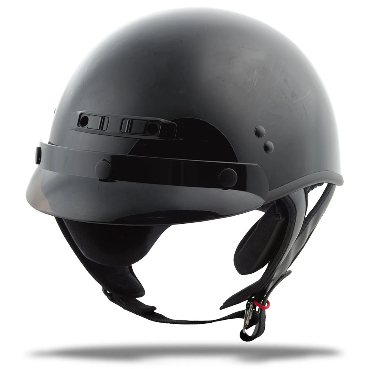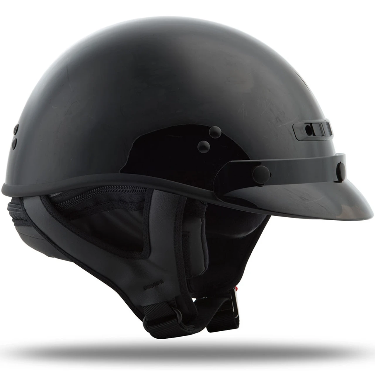 With its three snap visor, the GM-35 is a nice, versatile half helmet and you can grab it in a clean, classic gloss black finish. You can choose between a traditional cruiser look with its included sun visor and neck curtain or opt for the naked look by removing both. The three snap gives you the option of installing a variety of shields and visors to suite your personal style and riding conditions.