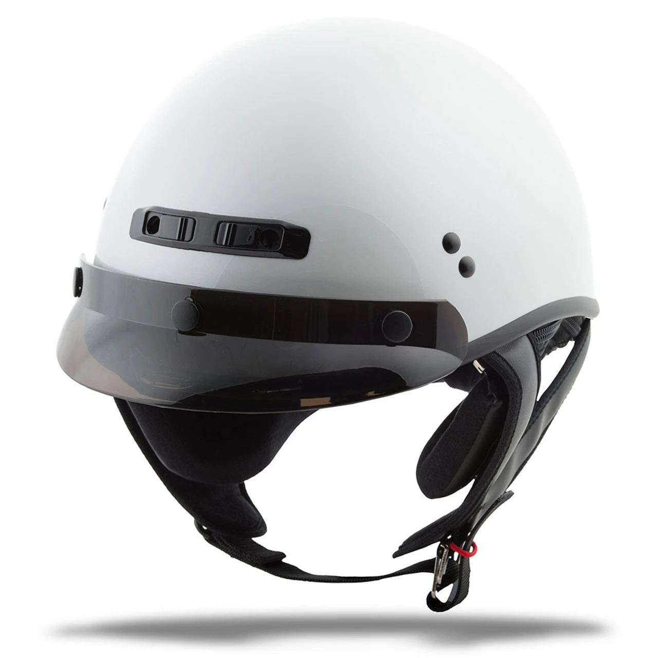 With its three snap visor, the Pearl White GMax GM-35 is a nice, versatile half helmet. You can choose between a traditional cruiser look with its included sun visor and neck curtain or opt for the naked look by removing both. The three snap gives you the option of installing a variety of shields and visors to suite your personal style and riding conditions.