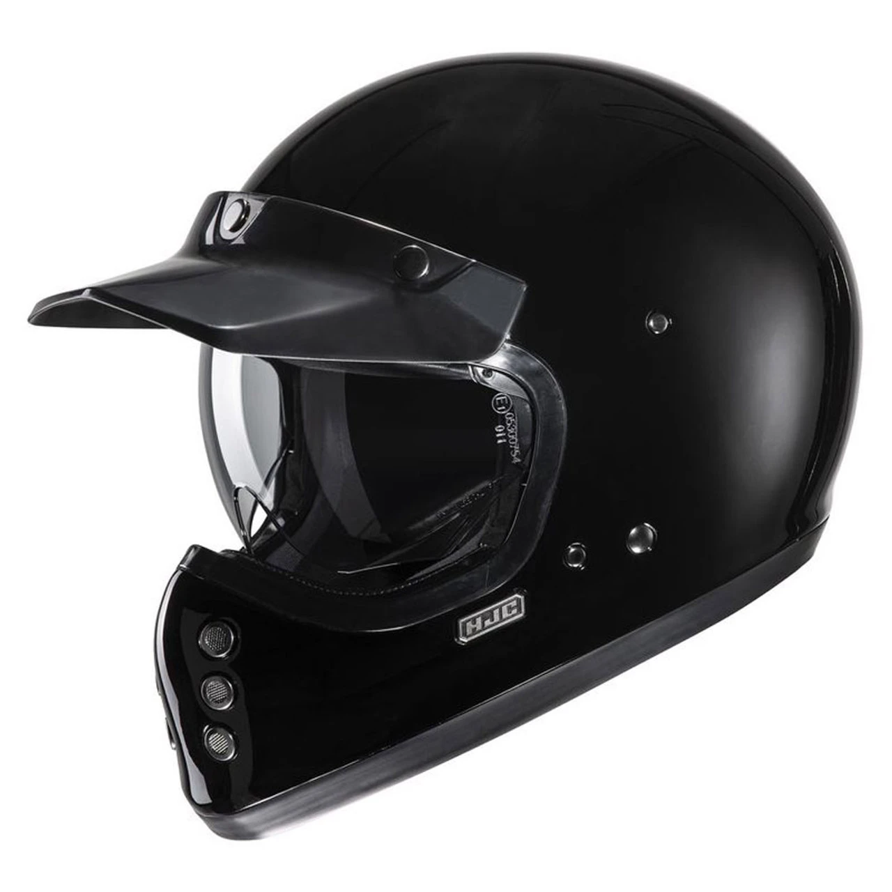 The new HJC V60 Helmet has a classic design with modern features. Advanced fiberglass shell with internal drop down sun visor, washable cheek pads and grooves for sunglasses while on the road. DOT approved with speaker pockets for Bluetooth.