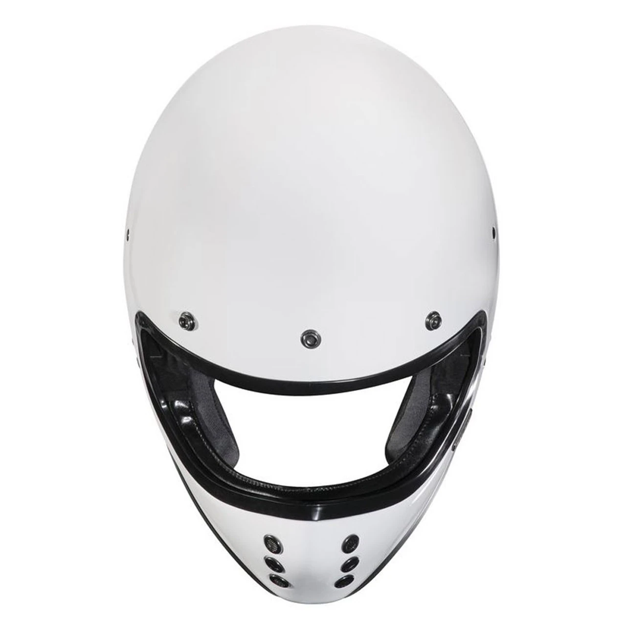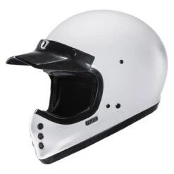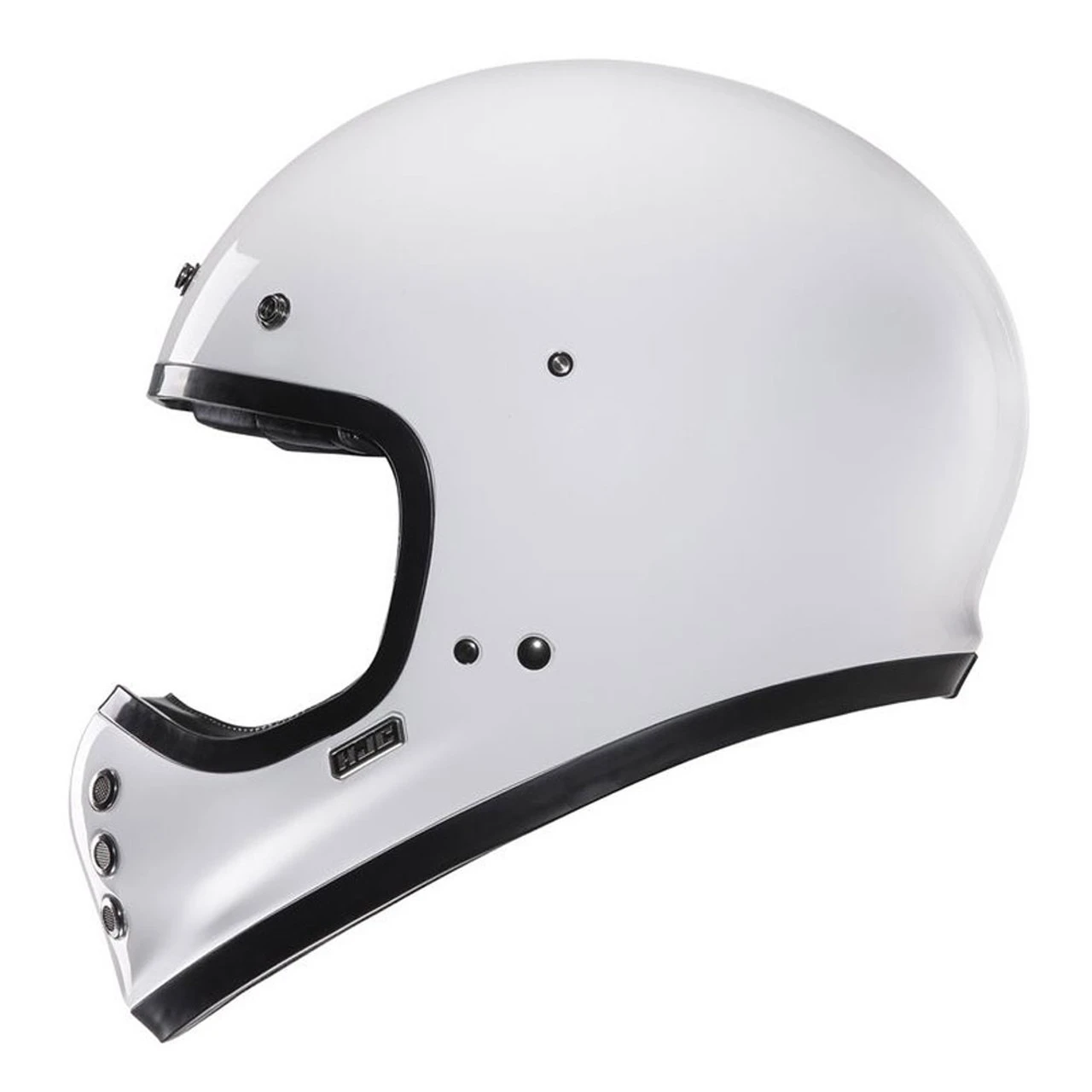 The new HJC V60 Helmet has a classic design with modern features. Advanced fiberglass shell with internal drop down sun visor, washable cheek pads and grooves for sunglasses while on the road. DOT approved with speaker pockets for Bluetooth. Solid Gloss White