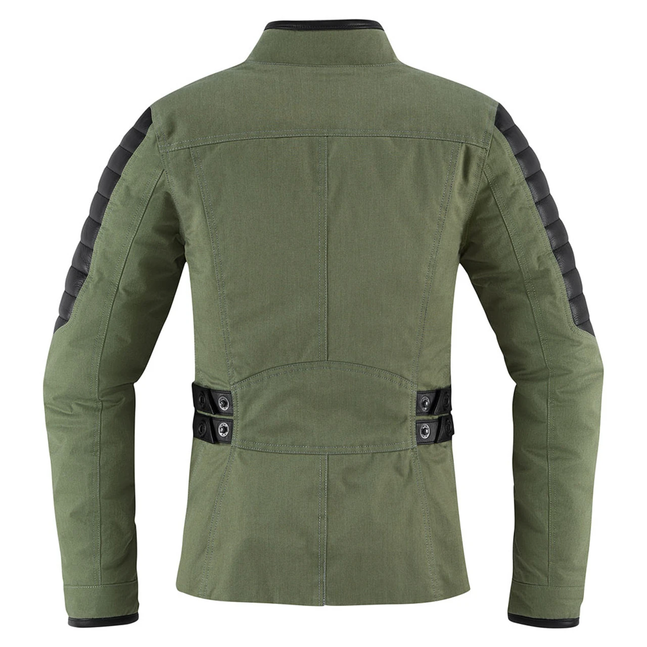 Mixing modern engineering with vintage soul, the women’s MH1000 jacket pays homage to the style of the past while delivering industry-leading riding features of today. Constructed of a durable textile and leather chassis, the women-specific Sport Fit ensures a proper fit and function. YKK tactical zippers, SatinCore liners, adjustable waist straps, and dual zipper vent cuffs are premium details for motorcycle functionality. Combine this with a full D3O impact protector package (elbow, shoulder, back) and enjoy a vintage look with a modern feel. Enjoy the Icon 1000 MH1000 in a good looking green finish.