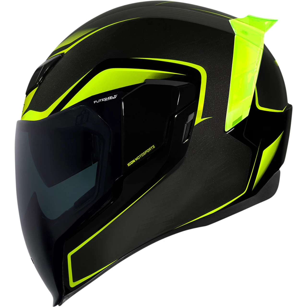 Optically designed for effect, the Crosslink graphic plays on the dynamic lines of the airflite helmet. Highlights of Hi-Viz yellow pop off the black base color. This helmet comes standard with a clear exterior face shield and a dark smoke internal drop shield. Internally you will find the Removable Hydradryโข interior comfort liner.