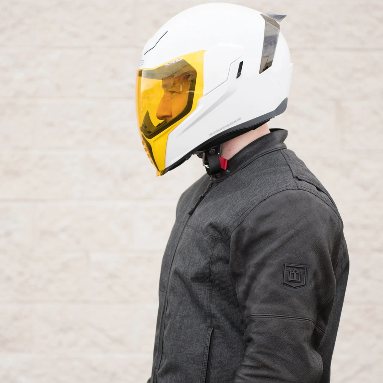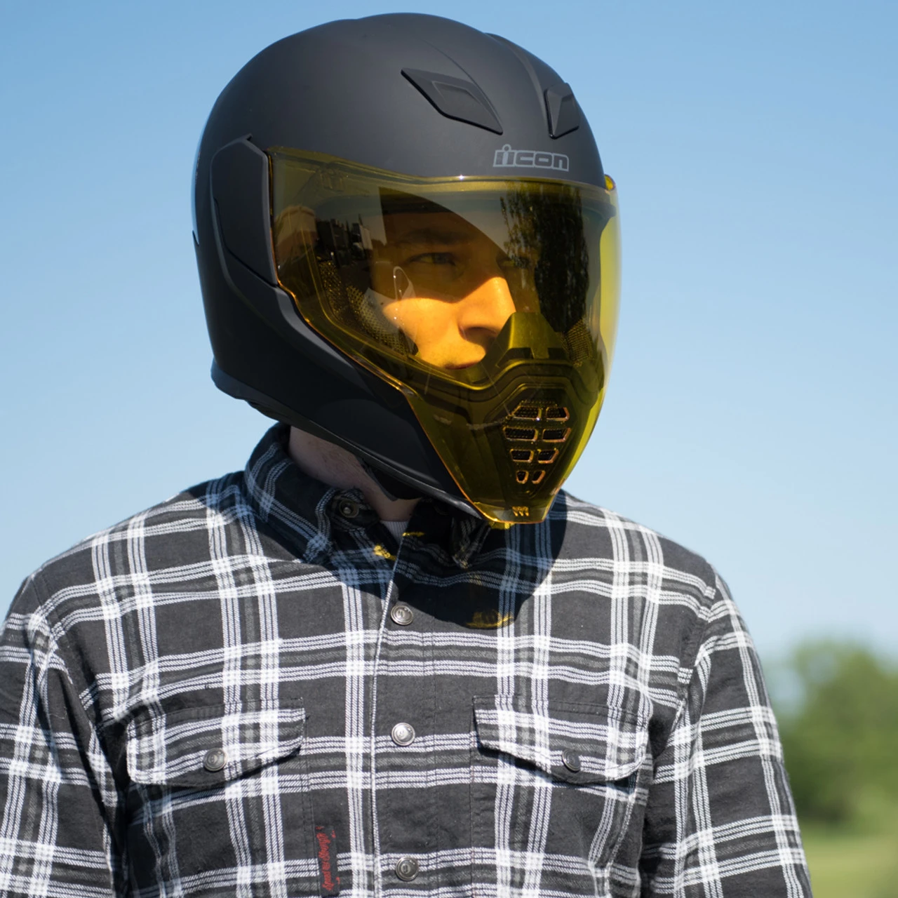 Pick up a new Yellow Fliteshield for your Icon Airflite helmet. Featuring a 3D molded process for optical clarity, and a fog-free coating.