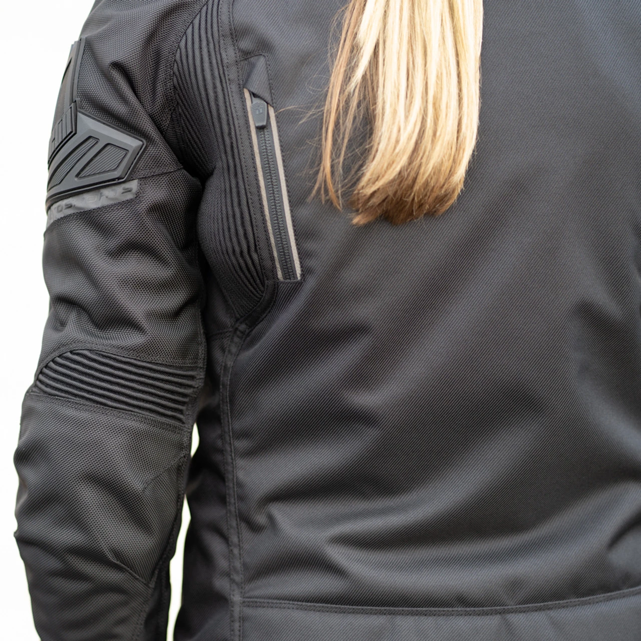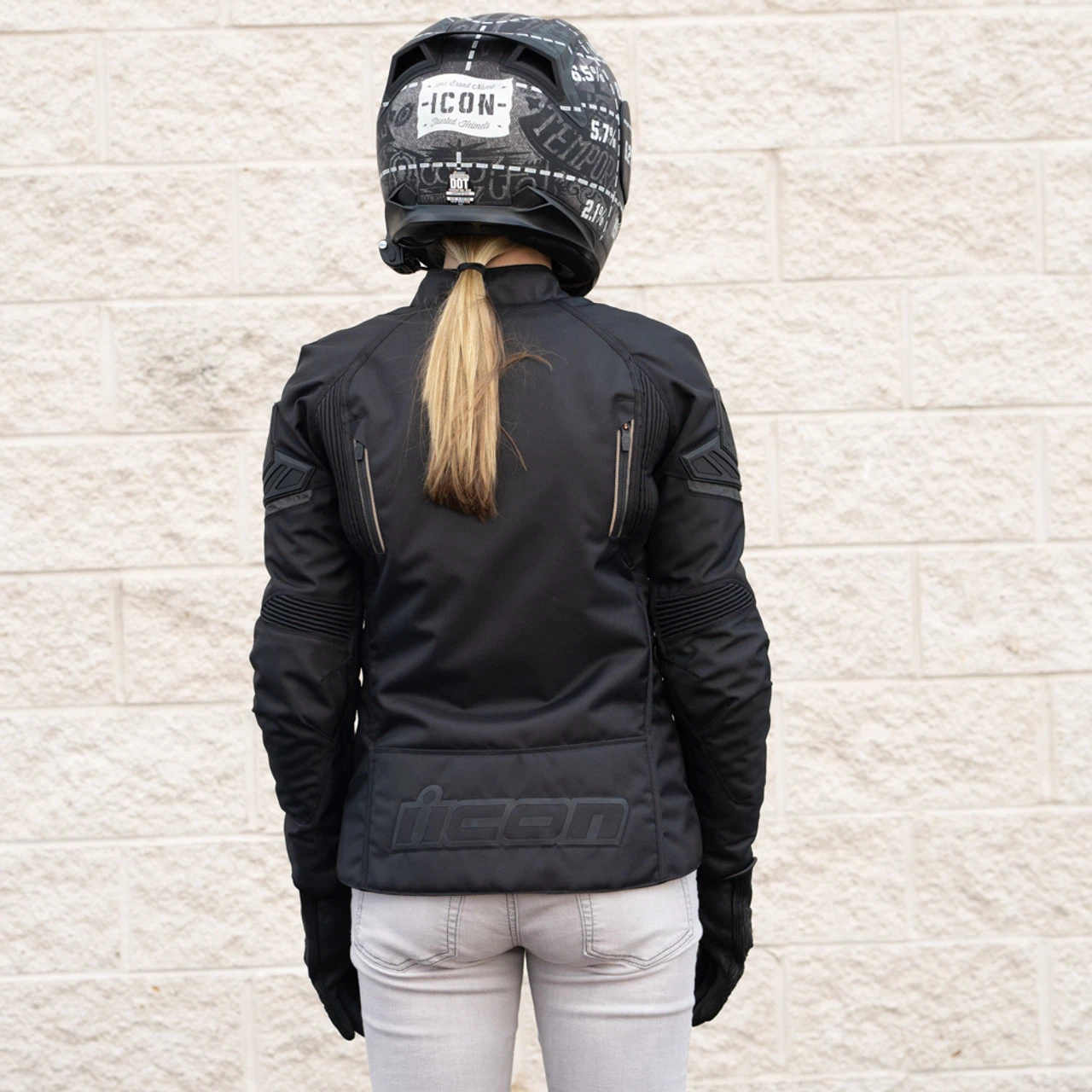 Proof that simple can be bold, the new women’s Icon Automag2 jacket makes a demanding sportbike statement, that’ll work well on just about any bike you want to roll with. Plus it comes with plenty of bold Icon style – this one blacked out for a stealth look that’ll work for plenty of riders. Comprised of a durable textile chassis with ballistic Nylon paneling impact zones, and outfitted with a full suite of D3O impact protectors: perfect for when your come-offs go southbound. Additional rider-centric details include dual zipper vent cuffs, front and back zipper vents for enhanced airflow, arm straps to reduce wind flap, and a removable quilted full-length liner should the temperature dictate. Icon understands the core needs of the street-focused rider and the Automag 2 jacket is the result.
