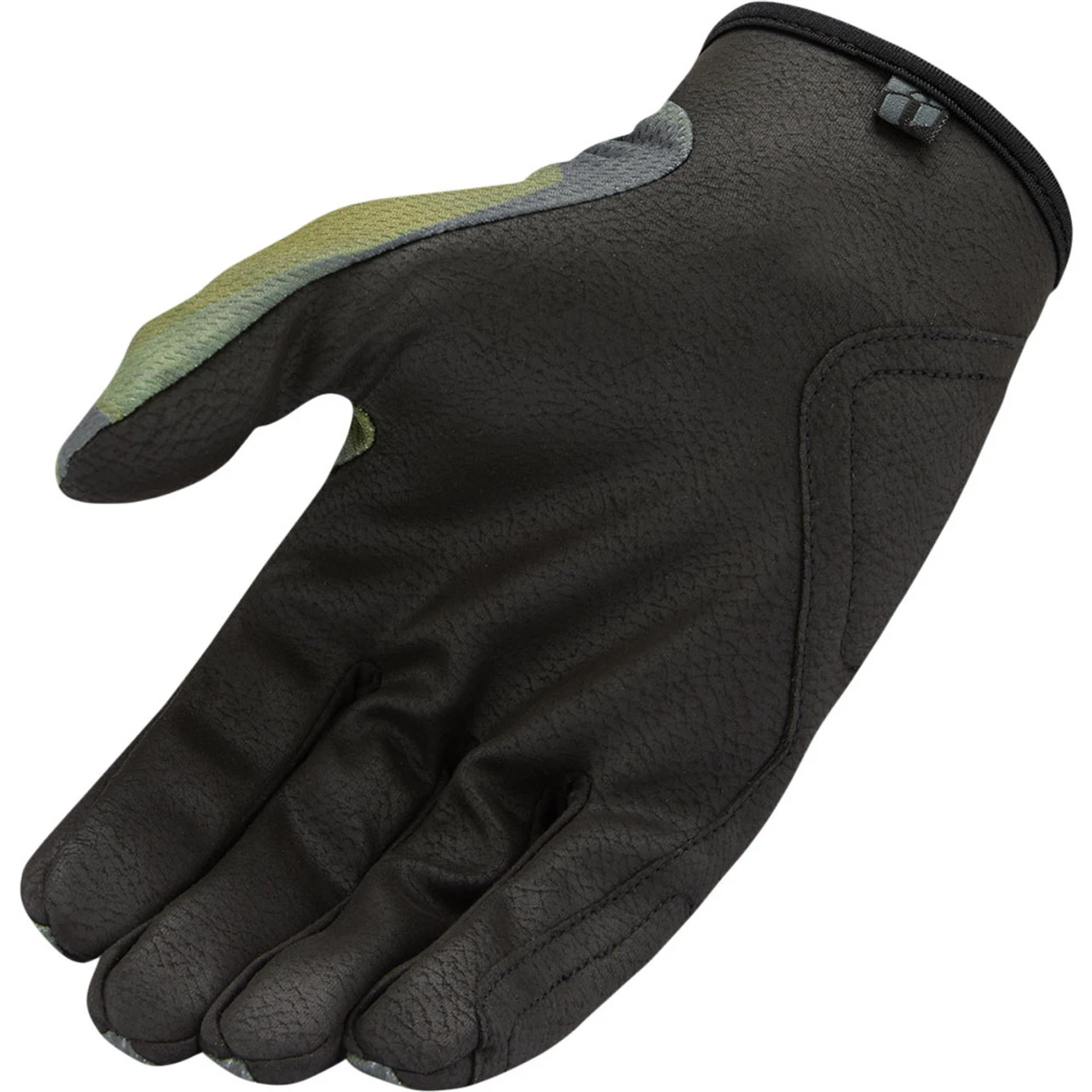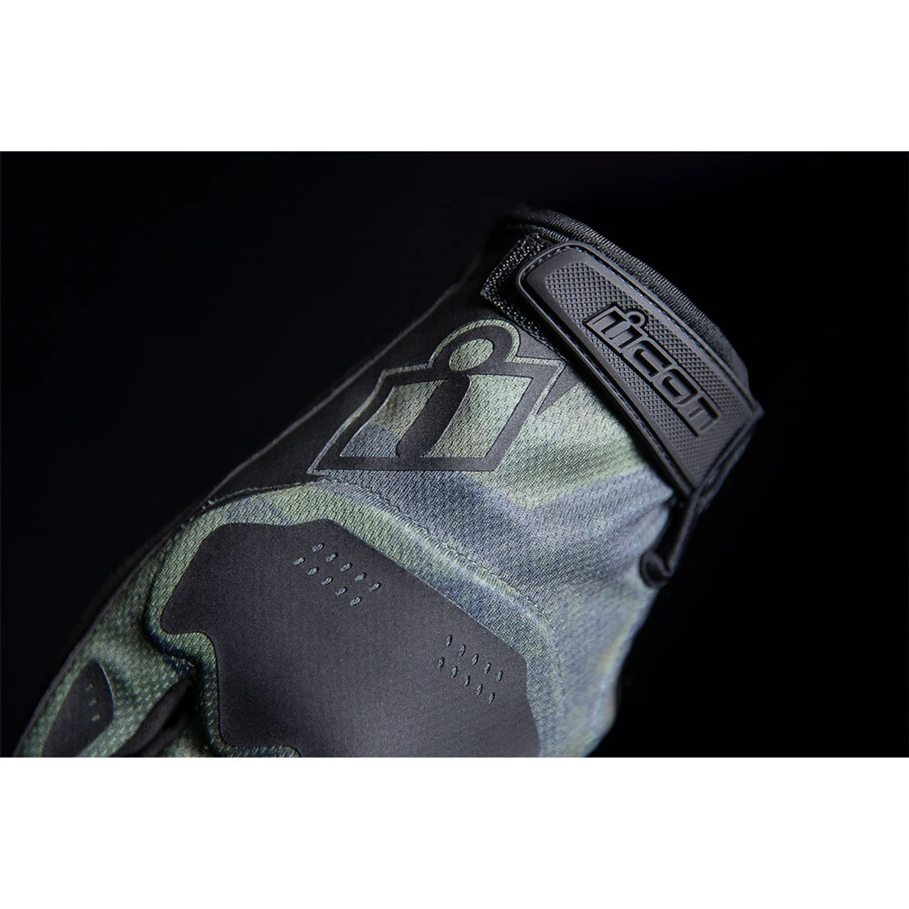 Sometimes life takes a soft touch with a heavy hand. The newest of ICON’s street specific MX inspired riding gloves is the Hooliganโข. The hi-flow mesh backhand is married to the Ax Laredoโข palm resulting in a lightweight street-performance riding glove. The precurved fingers ensure a comfortable fit, while the touchscreen capability allows you to operate your devices without having to remove your glove. A TPR Hook and Loop wrist closure ensures a proper fit. Grab your Icon Hooligan Gloves in the Battlescar Green design.