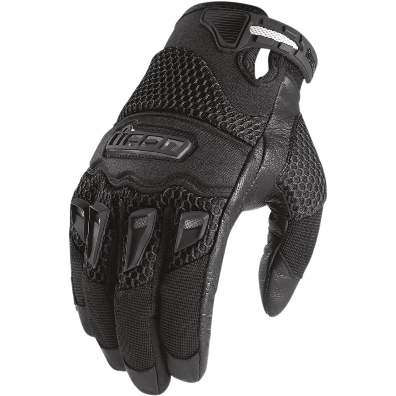 A standing tradition in ICON’s line of MX inspired, street-specific lightweight riding gloves. All our standard performance amenities are here, such as a pre-curved palm and finger design, thermoplastic rubber knuckles, and a secure wrist closure system. Of course a street motorcycle glove isn’t really a glove without a leather palm. The Twenty-Niner glove features a goatskin palm capable of hand-to-hand combat with gravel choked asphalt. With its hi-flow mesh backhand, the Twenty-Niner glove is perfect for spring and summer riding.