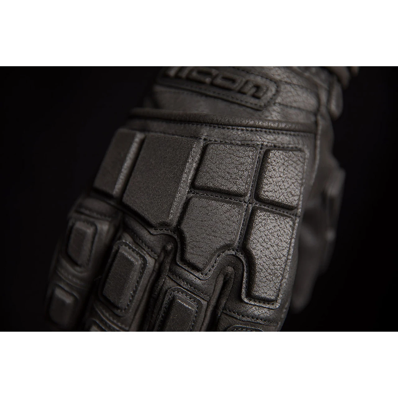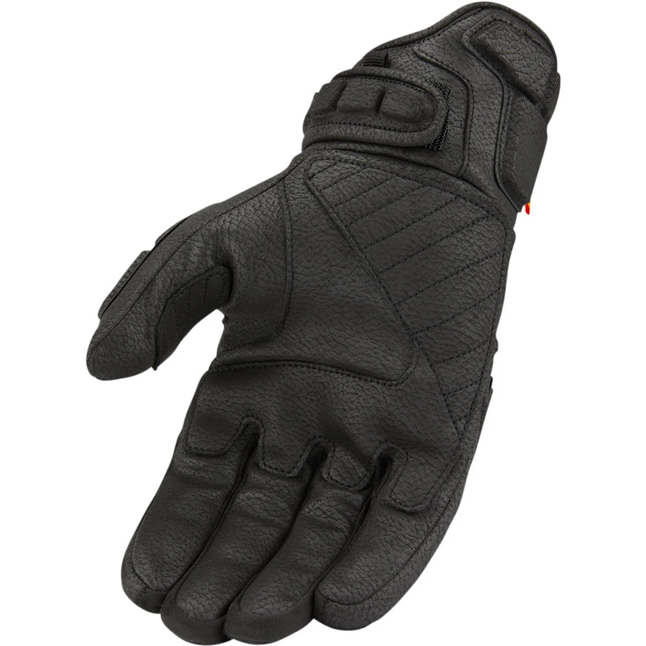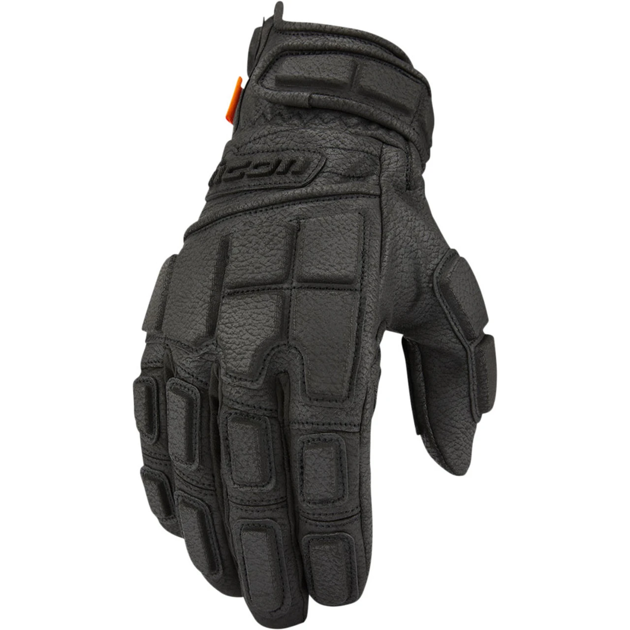 Icon’s Motorhead 3 gloves features an A x® Laredo synthetic chassis to give it a hide-like feel and positive control feedback . D3O inserts throughout the glove provide the significant coverage required for the premier street battle dress. Hook and loop wrist closure allows for easy on/off as well as adjustability for comfor t.