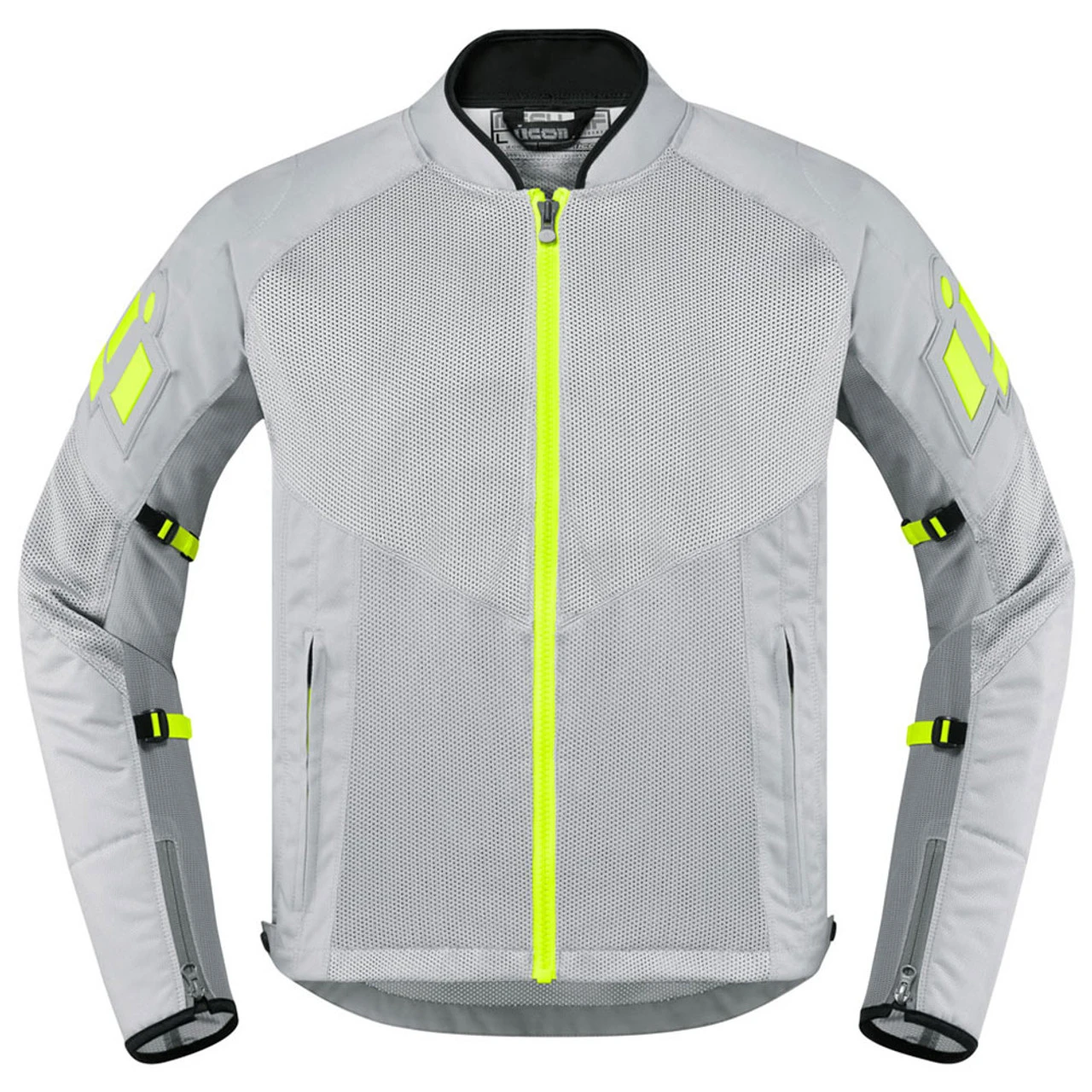 With the Icon Mesh AF Jacket there’s no longer the โItโs too hot for a jacketโ excuse. ICONโs sport fit Mesh AF jacketโs durable textile chassis is comprised of large mesh front and rear panels, providing you supreme airflow. Wind flap adjustment straps allow for a secure fit while reflective hits enhance nighttime visibility. The reinforced impact zones cover a full D3Oยฎ suite (shoulders, elbows, and back), combining for fortification during those nasty asphalt encounters. With the Mesh AF you can ride comfortable and covered, even when itโs hot AF outside. Pickup the Mesh AF Jacket in a grey finish with nice hi-viz accenting.