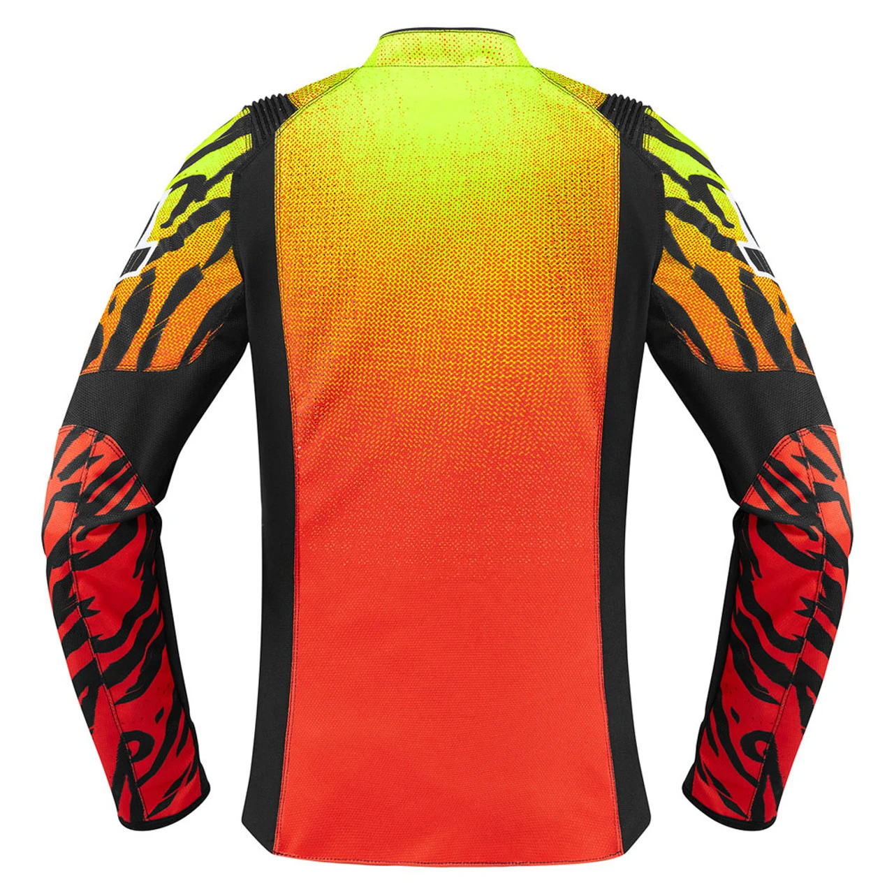 Dip the trip fantastic in the larger than life Wild Child Overlord SB2. Colors so loud, ears so bleeding. This guaranteed head-turner features a durable textile chassis tailored with Icon’s Attack Fit. Pre-curved arms house D3O impact protectors, while the back features a Level 1 D3O back impact protector. Additional rider-centric details include dual zipper vent cuffs, integrated flex zones, engineered perforations for enhanced airflow, and a removable quilted liner should the temperature dictate. Reliable riding gear meets technicolor dream coat.