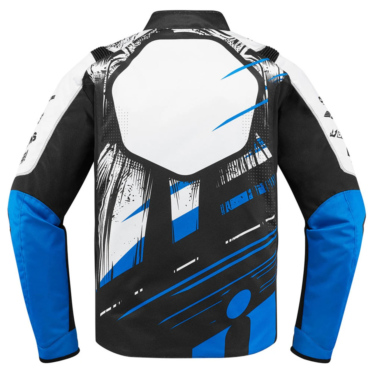 The art of intimidation begins with a firm handshake, unwavering eye contact and a rad skull-rich motorcycle jacket. Now you can intimidate with the Icon Overlord SB2 STIM Jacket in black/blue/white. Comprised of a durable textile chassis with an integrated flex zone, it is superior in fit, form, and function. Internally, the jacket is outfitted with a removable insulated SatinCore vest liner and a full complement of D3O impact protectors (elbow, shoulder, back). The STIM is the art, you bring the intimidation.