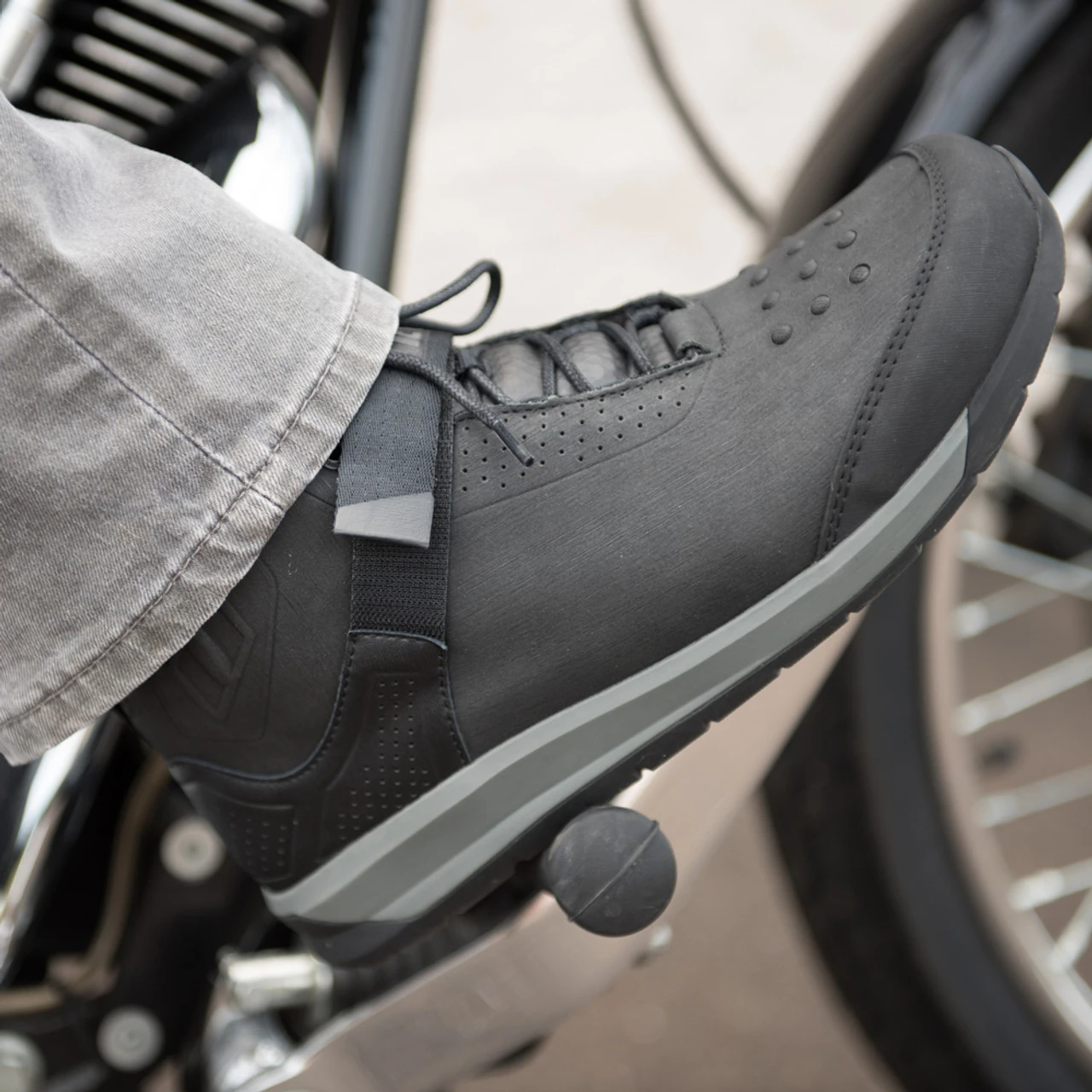 The 5th generation of the iconic SUPERDUTY 5™ Boot leads the way for urban riding gear. Solid value, these will protect your feet and look just as good of the bike in a sporty, blacked out style. We revamped our most popular boot into a sleek, athletic silhouette. The upper is comprised of TECTUFF® coated leather with incredible abrasion-resistant properties. Internally we’ve revamped the structure, forgoing the steel shank for an engineered lasting board, which provides full-foot reinforcement while still remaining comfortable. The SD5 includes D3O® ankle insert in vulnerable ankle areas. The visually-defining rubber nub interface, hidden ghillie laces, and mid-foot support strap—all staples of the Superduty legacy—provide a sure and secure fit. Five generations in, we continue to step up the moto footwear game.
