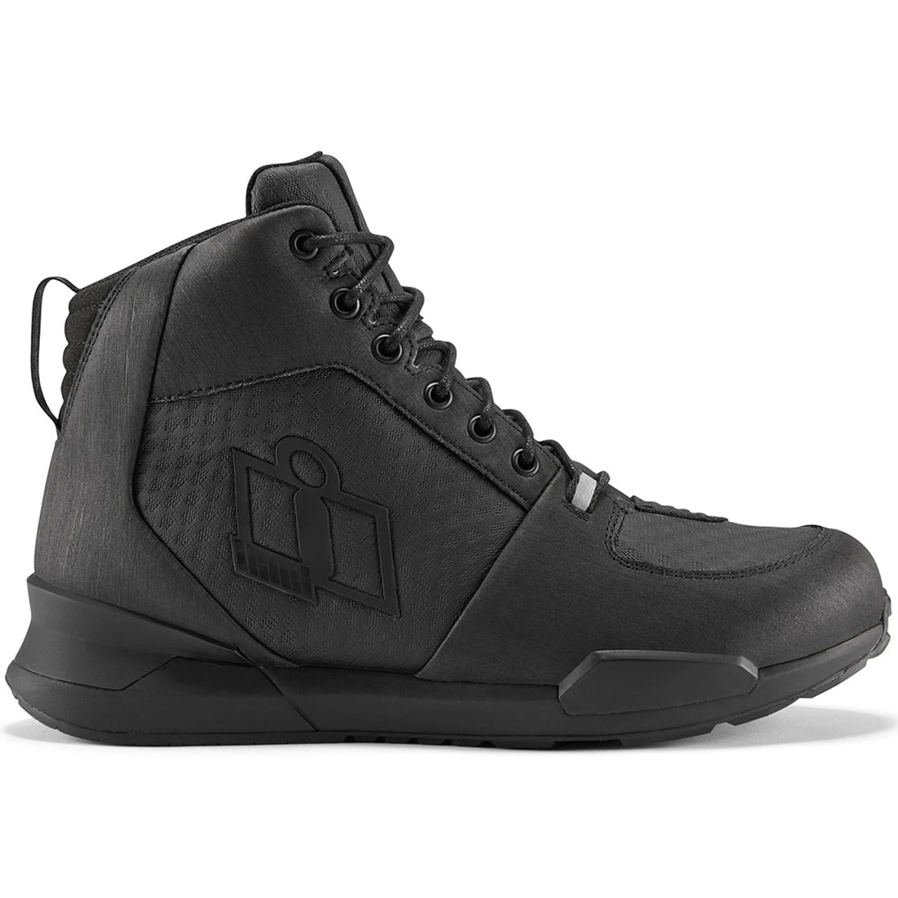 Take on the elements while riding in lightweight comfort with the Tarmac Waterproof riding shoe. The TECTUFFยฎ uppers are paired with an athletic footbed and axialmetric shank, resulting in rugged motorcycle shoes with excellent walkability. The eVent waterproof/breathable membrane keeps your feet dry even in the harshest of conditions. The robust exterior is paired with D3Oยฎ ankle inserts for additional coverage. Enjoy the stylish, performance driven Icon Tarmac Waterproof Riding Shoes in black.