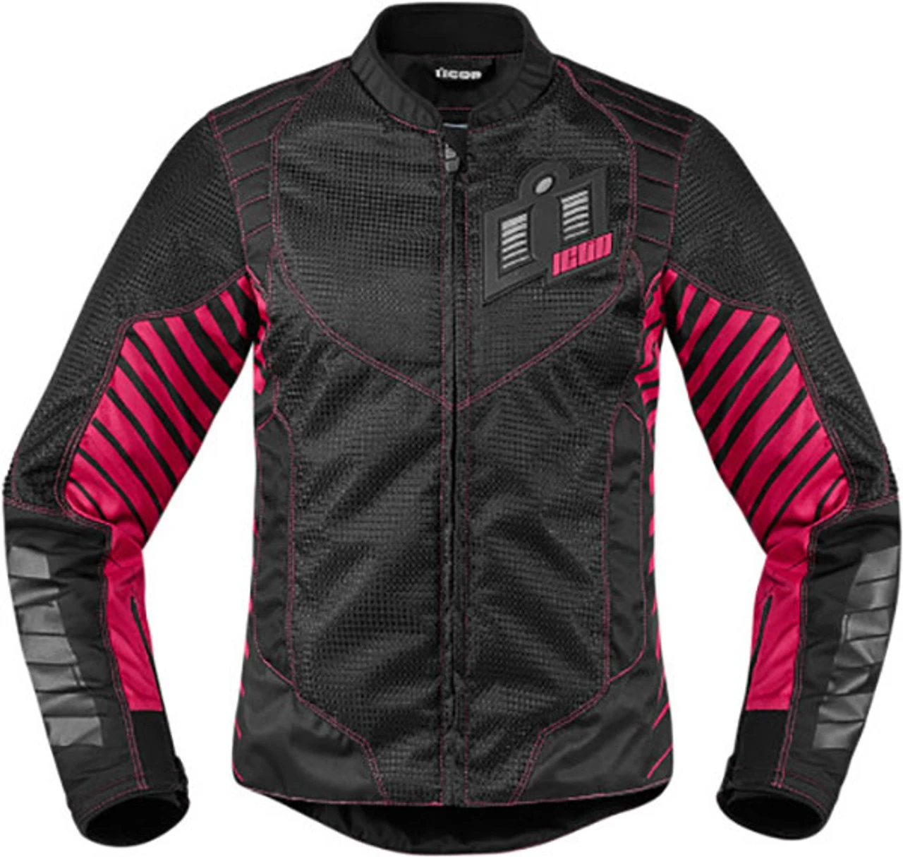 Icon’s Wireform Textile Motorcycle Jacket for women comes in either sleek black or black with pink accents. With pre-curved arms and full D30 shoulder, elbow and back armor you’ll stay safe and comfortable for miles.