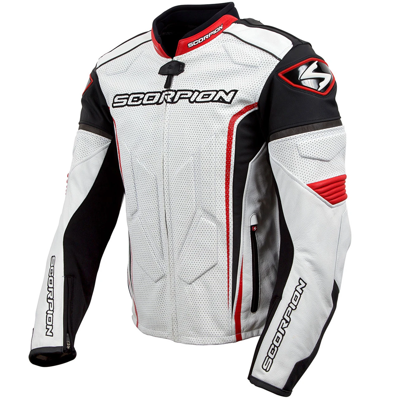 Scorpion’s Clutch Jacket is available in a pair of colors – Phantom or White/Red and provides serious protection and performance for riders looking for a well-designed, advanced leather jacket. Extreme perforation across chest and arms allows plenty of ventilation, making this a comfortable jacket that will keep you safe and looking good for miles.