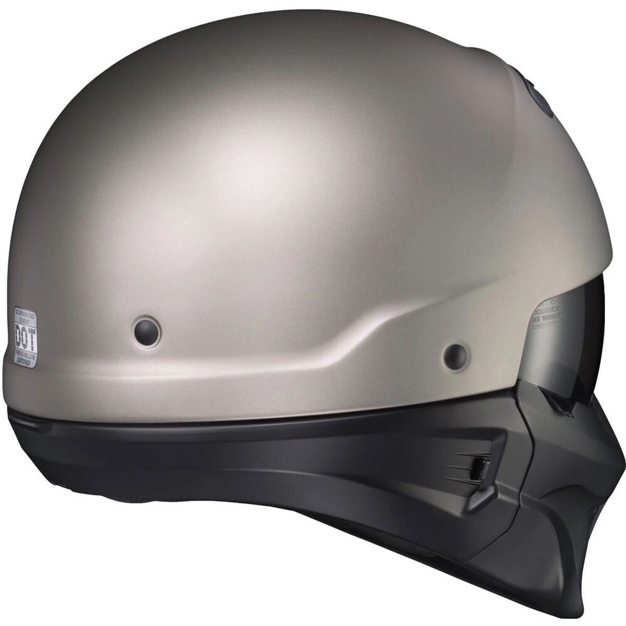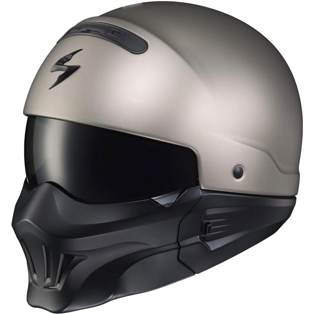The new Scorpion Covert EVO offers another iteration of the Covert lineup with an all-new, unique face mask as a part of their 3-in-1 helmet. Meant to disrupt the norm, this radical design can be converted to work with any type of bike. We started with a half helmet and added an integrated drop-down sun visor for protection from sunlight. A rear comfort sleeve allows you to convert the helmet to a ¾ open-face and then attach the included front mask and you’ve got one, aggressive “bad ass” looking motorcycle helmet. The Ratnik design of the Covert helmet only adds another layer to this sweet new design from Scorpion.