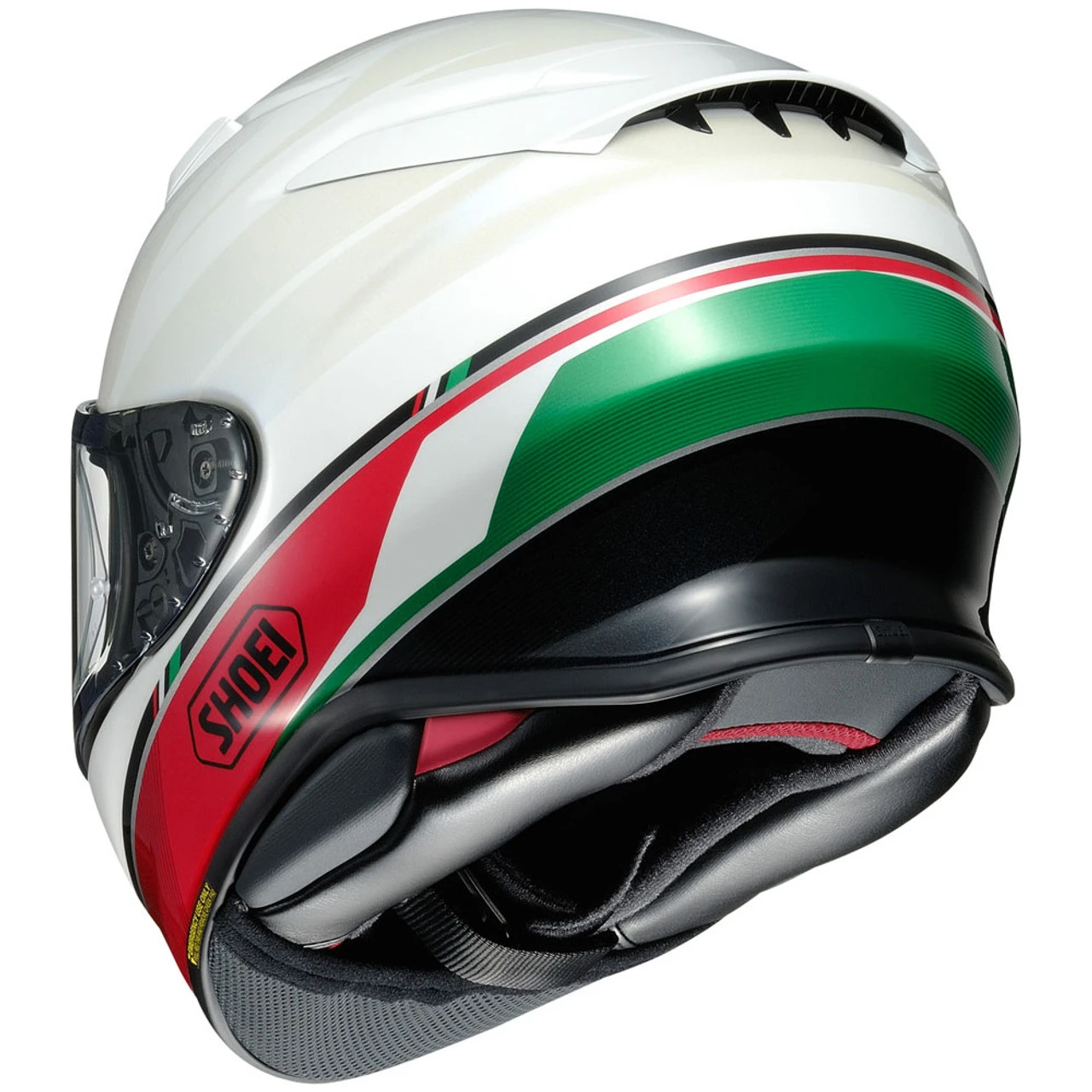 The all NEW Shoei RF-1400 is the lightest and most compact SNELL-approved full-face helmet model.It has evolved in the pursuit of perfection to the next level for functionality and performance over its predecessor. Wind tunnel-tested and refined aerodynamics and ventilation performance. Plus, noise-reduction technology reduces unwanted wind and road noise. Nocturne graphic in White/Red/Green colors.