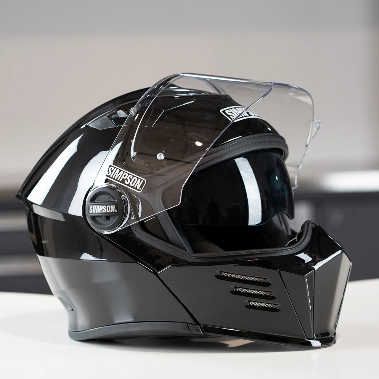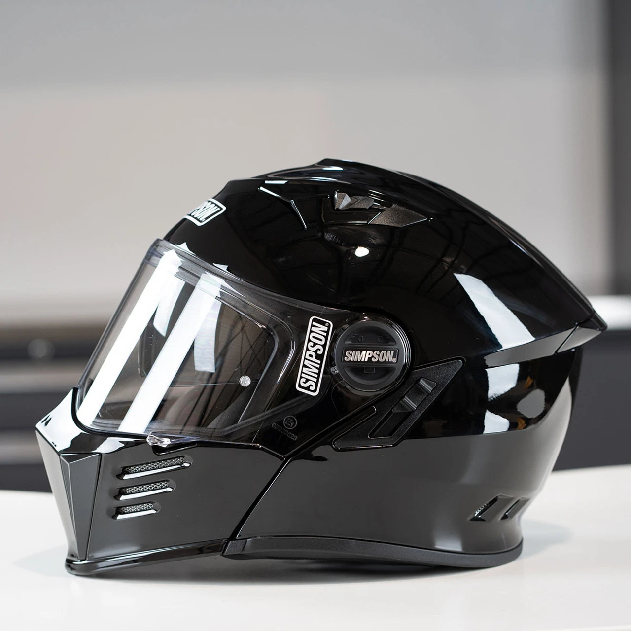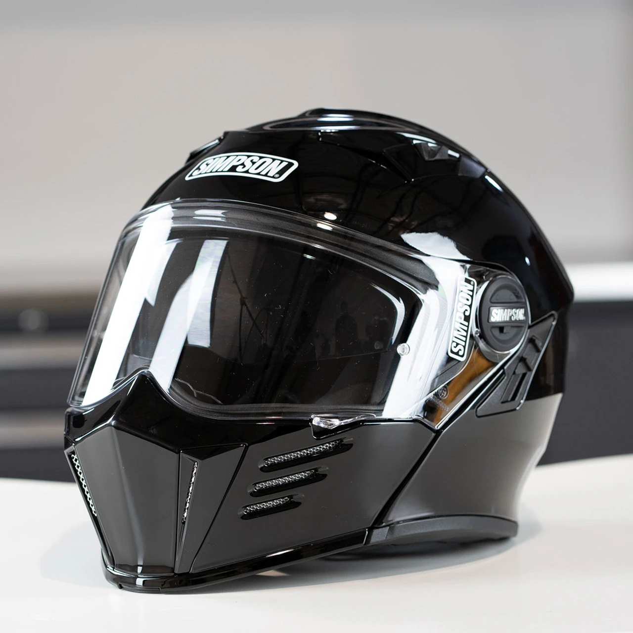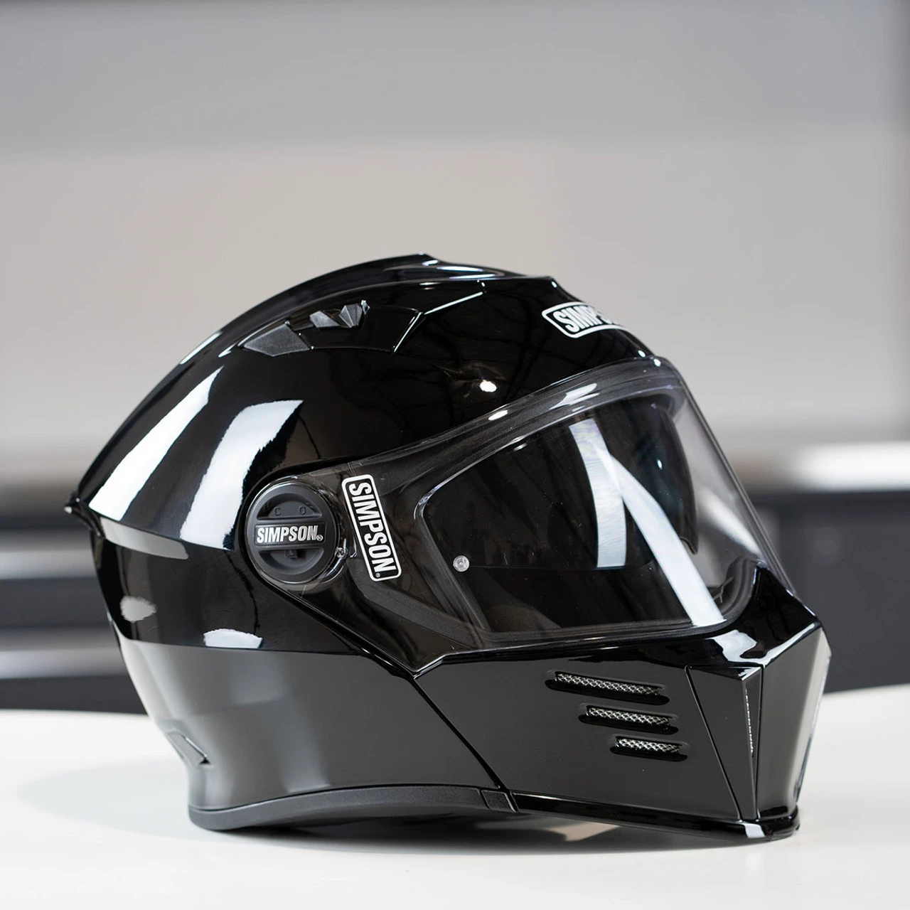 New from Simpson Helmets, the Mod Bandit breaks the mold… it’s an aggressive, street inspired helmet that goes next level with a modular design. It features a flip up front chin bar as well as an internal drop down visor. Plus it’s got the venting and aggressive lines built in for the tough look that Simpson is famous for. Riders will enjoy plenty of new perks from the Simpson Mod Bandit – one hand modular function, communication system ready, Pinlock system compatible, and an internal sun shield. Ready to ride across town or around the world, the Mod Bandit offers the function and style you are looking for with plenty of flexibility. Grab your new aggressively styled Modular Bandit from Simpson in classic Gloss Black.