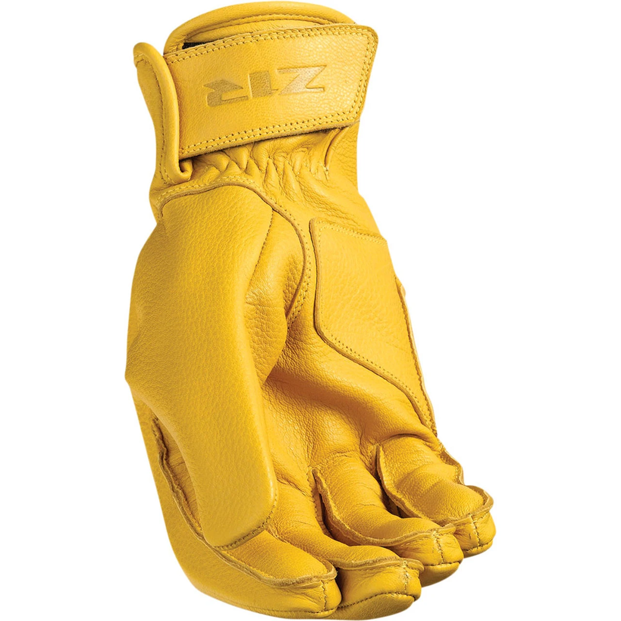 Z1R premium tan Deerskin gloves feature padded palm overlays, outseam construction and hook & loop wrist closure.