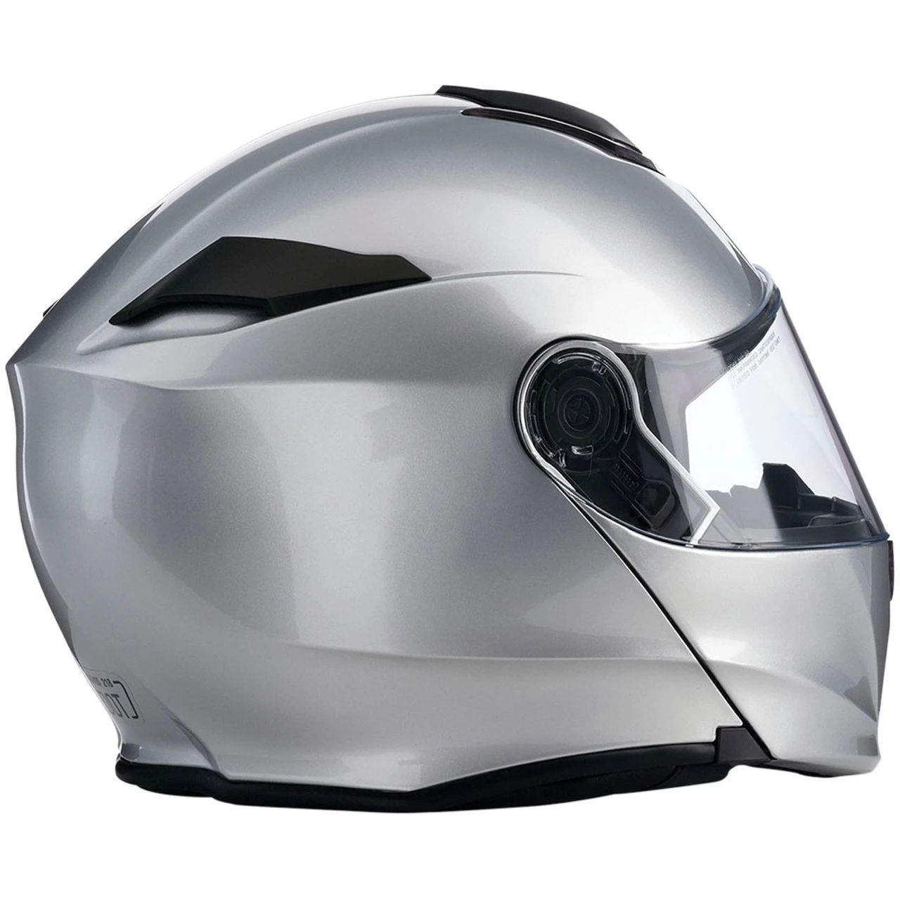 Pickup the new Z1R Solaris Modular Helmet in a Silver finish. The Solaris Helmet is an impressive value with plenty of features. Flip up the helmet for some air and easy on/off. Drop down visor, internal sun visor and much, much more. Both DOT and ECE approved, you’ll be safe and enjoy the versatility and functionality that a modular motorcycle helmet provides.